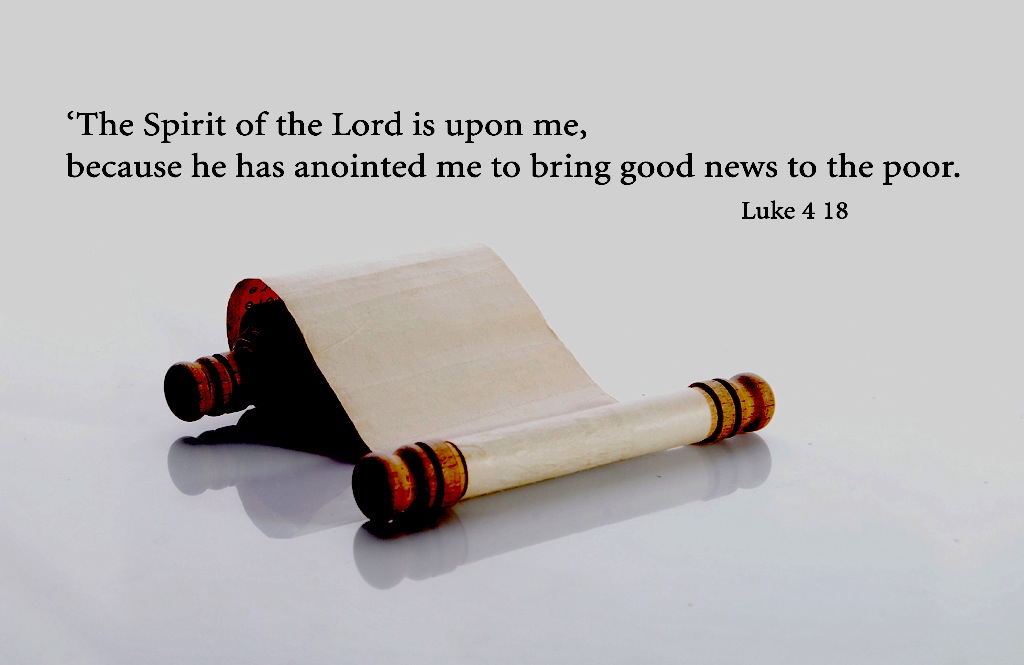He unrolled the scroll and found the place where it was written: “The Spirit of the Lord is upon me, because he has anointed me to bring good news to the poor. He has sent me to proclaim release to the captives and recovery of sight to the blind, to let the oppressed go free, to proclaim the year of the Lord’s favor.” And he rolled up the scroll, gave it back to the attendant, and sat down. The eyes of all in the synagogue were fixed on him. Then he began to say to them, “Today this scripture has been fulfilled in your hearing” (Luke 4:17-21).